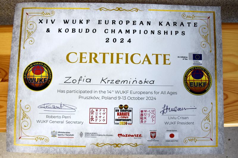 W dniach od 9 do 13 października 2024 roku wzięła udział w Mistrzostwach Europy 2024 organizowanych przez WUKF World Karate, które odbyły się w Pruszkowie. W zawodach wzięło udział 1725 uczestników z 25 krajów. Zosia uzyskała Certyfikat awansujący ją do kolejnych mistrzostw, które odbędą się w 2025 roku w Szwecji.