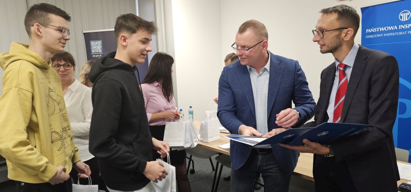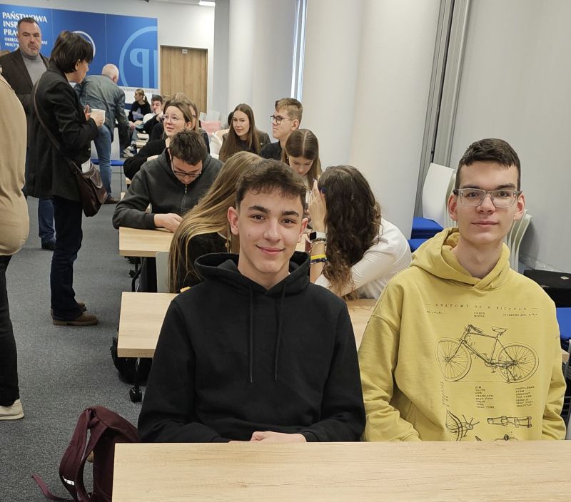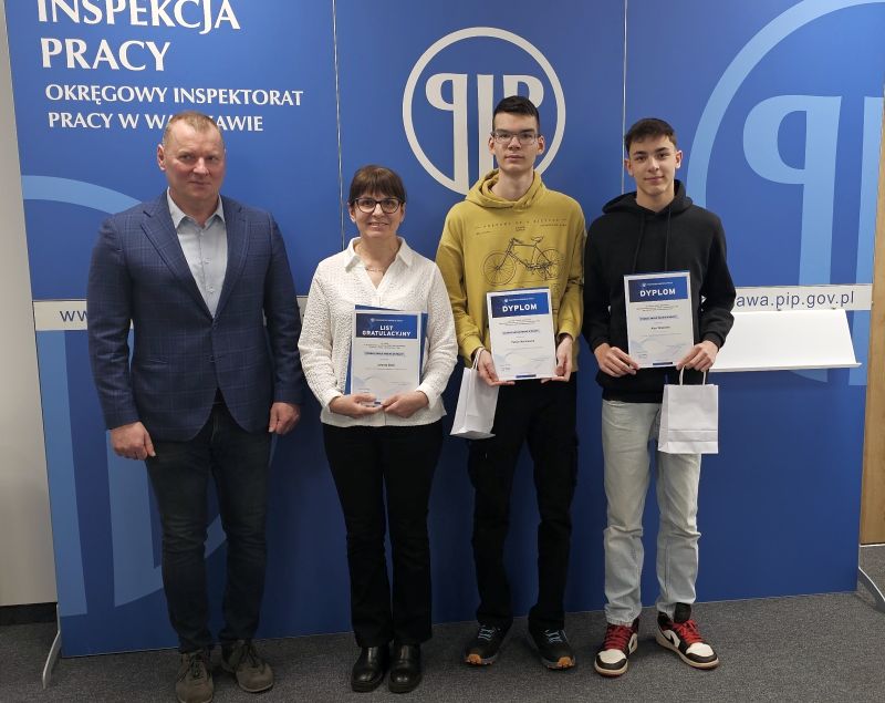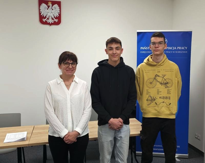 W dniu 6 marca 2025r. odbył się etap regionalny ogólnopolskiego Konkursu wiedzy o prawie pracy i bhp „Poznaj swoje prawa w pracy”. Organizatorem konkursu była Państwowa Inspekcja Pracy i Okręgowy Inspektorat Pracy w Warszawie. W Konkursie na szczeblu regionalnym naszą Szkołę reprezentowali laureaci etapu szkolnego- Patryk Markiewicz z klasy II TI i Alan Wrzesień z klasy II THR. Zadaniem konkursowym dla uczestników było udzielenie odpowiedzi na pytania z zakresu ochrony pracy, zasad bezpieczeństwa i higieny pracy, legalnych form zatrudnienia oraz innych kwestii związanych z pracą zarobkową. Uczestnicy etapu regionalnego Konkursu zostali wyróżnieni dyplomami uczestnictwa i nagrodami rzeczowymi ufundowanymi przez Okręgowy Inspektorat Pracy w Warszawie. Opiekunowie uczestników Konkursu otrzymali listy gratulacyjne za merytoryczne wsparcie i pomoc w podejmowaniu przez uczniów tematyki bhp i prawa pracy.
