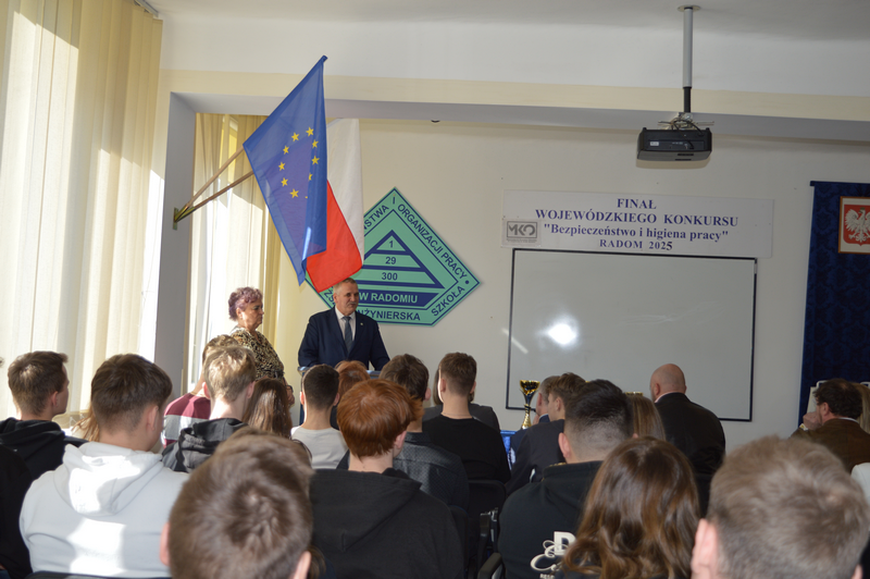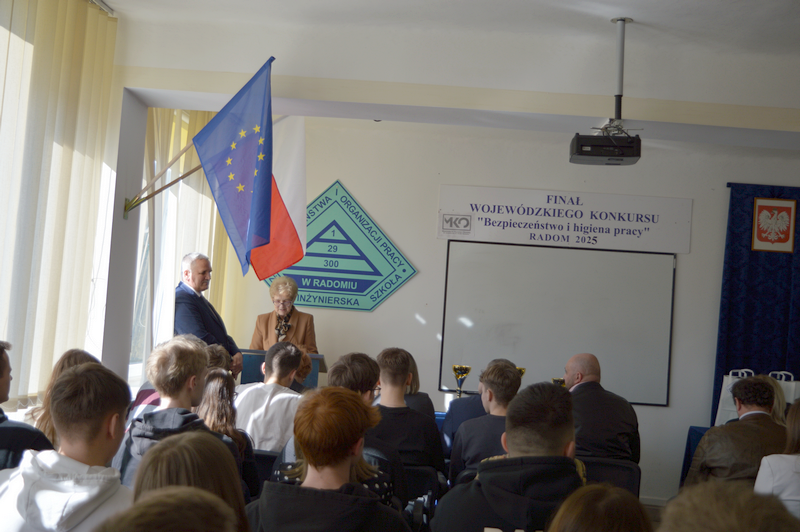 W dniu 29.02.2024 roku w Radomiu odbył się Finał Wojewódzkiego Konkursu „Bezpieczeństwo i Higiena Pracy” zorganizowany przez Wyższą Inżynierską Szkołę Bezpieczeństwa i Organizacji Pracy. Naszą szkołę reprezentował pięcioosobowy zespół uczniów klas drugich, którzy zostali wyłonieni w eliminacjach szkolnych: Nina Kopeć, Bartosz Gzik, Dawid Komorek, Kacper Sambor, Dawid Piwowarczyk. W finale uczestniczyły zespoły z 16 szkół ponadpodstawowych z całego województwa. Uczniowie musieli wykazać się szczegółową wiedzą z zakresu BHP. Ostatecznie nasz zespół uplasował się na wysokim IV miejscu.