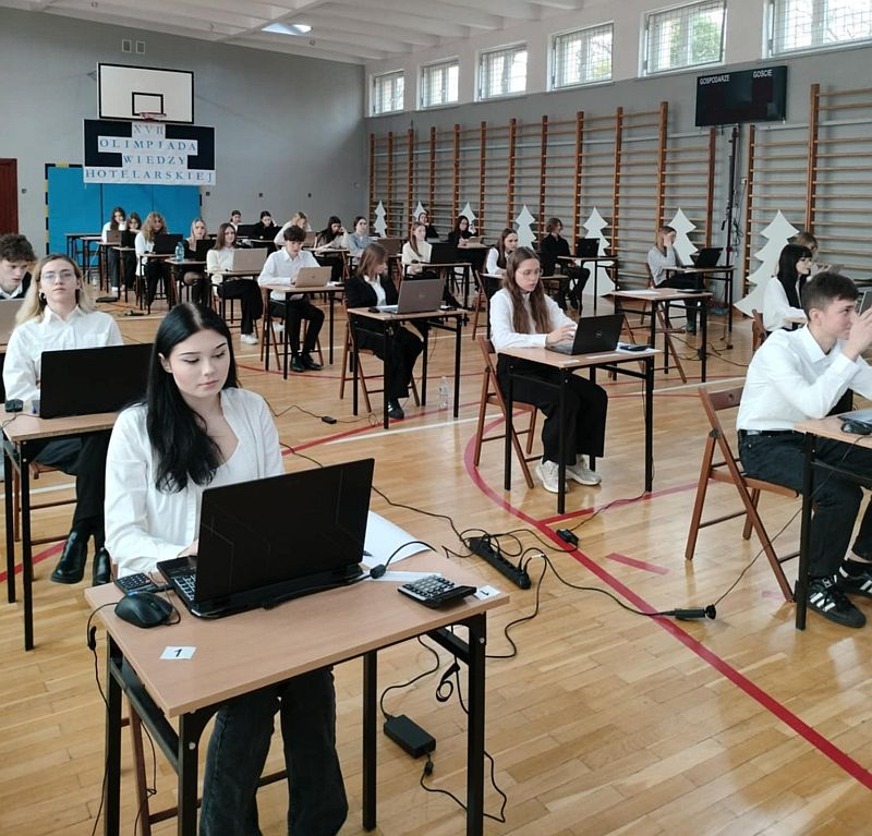 W poniedziałek 8 stycznia 2024 roku odbył się etap okręgowy XV – jubileuszowej edycji Olimpiady Wiedzy Hotelarskiej, zorganizowanej przez Wyższą Szkołę Gospodarki w Bydgoszczy, której motto w tym roku brzmiało ,,Turystyka biznesowa – Hotele z motywem przewodnim”. Zakres tematyczny tegorocznej olimpiady ma na celu pokazanie młodym ludziom nowoczesnych rozwiązań stosowanych w branży hotelarskiej i gastronomicznej. Do etapu okręgowego przystąpili laureaci etapu szkolnego: Karolina Więckowska oraz Aleksander Abramowicz – uczniowie z klasy IV THR i z przyjemnością i dumą informuję, że Aleksander Abramowicz z najwyższym wynikiem z okręgu 7 (w Warszawie) zakwalifikował się do etapu finałowego Olimpiady, dodam jeszcze, że okręgów było 10, a laureatów z całej Polski 30.