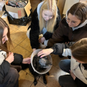 Szkolne Towarzystwo Przyjaciół Opieki nad Zwierzętami po raz kolejny zaangażowało się w pomoc dla bezdomnych zwierząt poprzez zbiórkę karmy, koców i zabawek dla psów i kotów. 18 marca grupa 26 uczniów wraz z Panią Elizą Puc i Magdaleną Wieczorek udała się po do Przytuliska dla Bezdomnych Zwierząt we Wrzosowie. Była to okazja do zapoznania się z warunkami, w jakich żyją bezdomne i opuszczone zwierzęta oraz spędzić z nimi trochę czasu, poprzytulać pogłaskać i pospacerować.