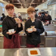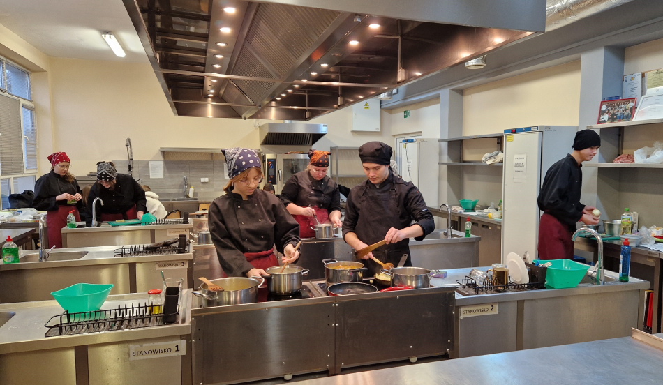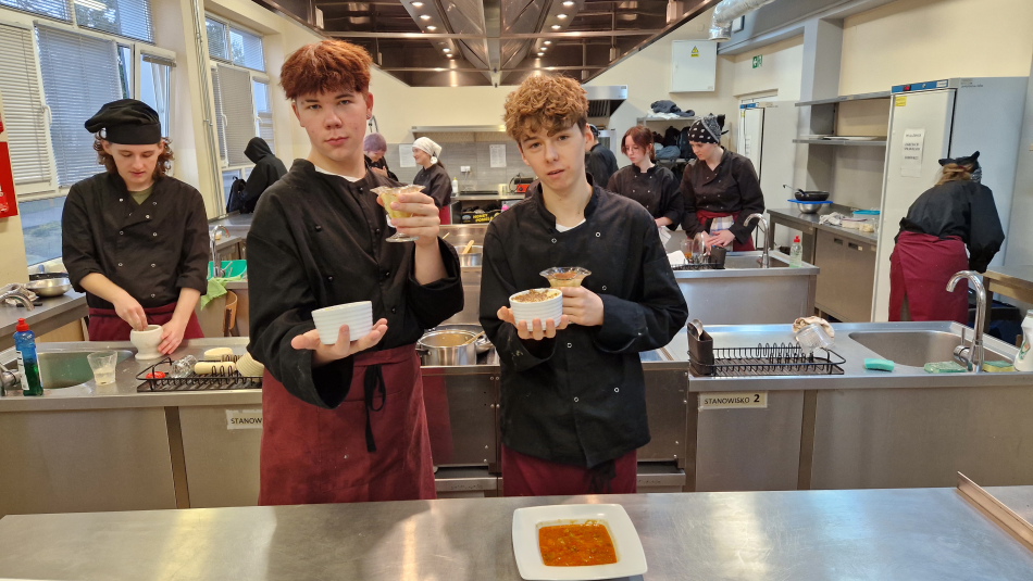 W dniu 18 października uczniowie klas gastronomicznych przystąpili do szkolnego etapu XXVII Olimpiady Wiedzy o Żywieniu, której tematem przewodnim są „Ryby i owoce morza – przetwórstwo i zastosowanie w żywieniu.” Olimpiada Wiedzy o Żywieniu stawia sobie za cel rozwijanie zainteresowań uczniów i nauczycieli szkół ponadpodstawowych problematyką potrzeb pokarmowych człowieka i sposobów ich prawidłowego zaspokajania, wartości odżywczej i prozdrowotnej żywności, gastronomii i kelnerstwa oraz roli żywienia w zapobieganiu chorobom dietozależnym. Podczas pierwszego etapu rywalizacji najlepszymi uczniami okazali się Sebastian Zgiep i Karolina Maciak z klasy 4 TŻH, którzy będą reprezentować naszą szkołę podczas kolejnego etapu okręgowego w Warszawie.