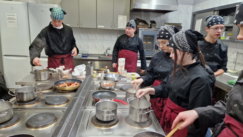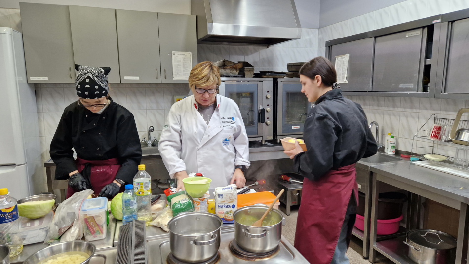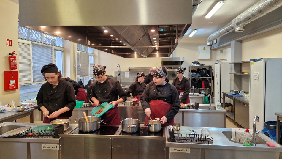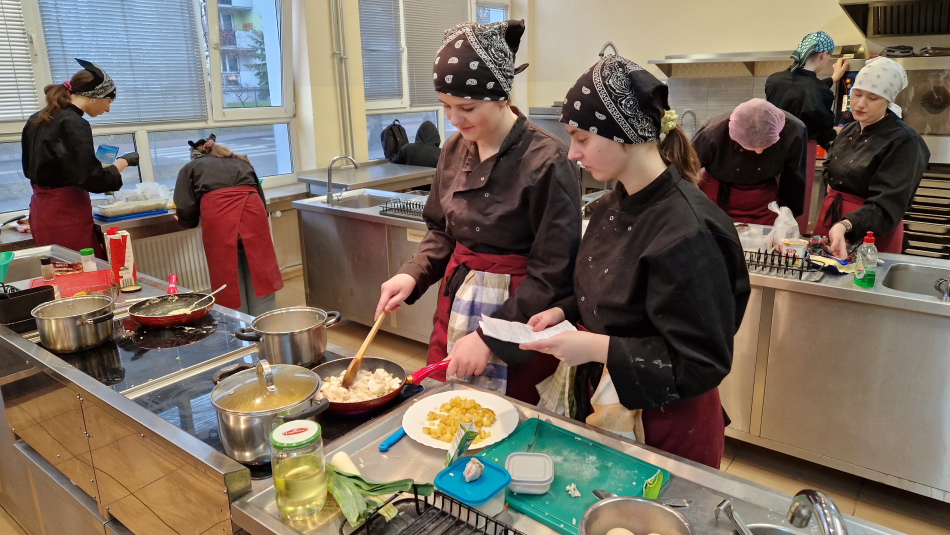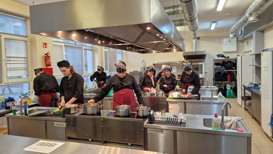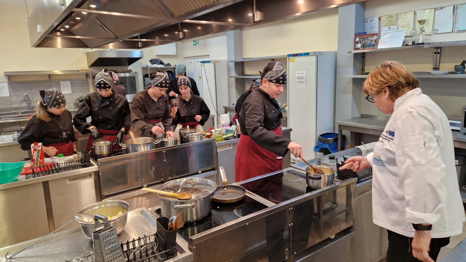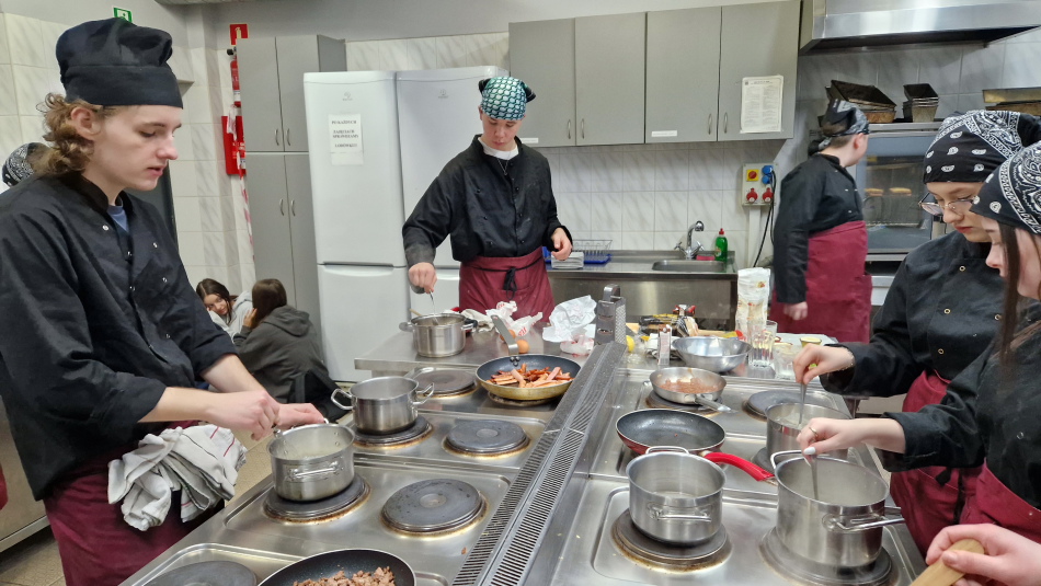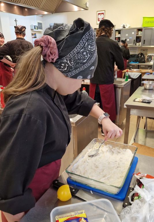 Uczniowie doskonalili umiejętności pracy z obróbką wstępną i cieplną ryb, warzyw, a także techniki formowania i pieczenia ciasta oraz doboru odpowiedniej zastawy stołowej do serwowania potraw. Wspólne gotowanie sprzyjało poszerzania wiedzy z kuchni różnych narodów.