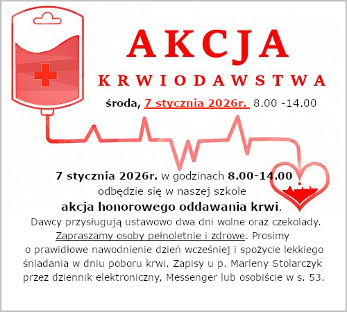 UWAGA! Akcja krwiodawstwa – 7 stycznia!